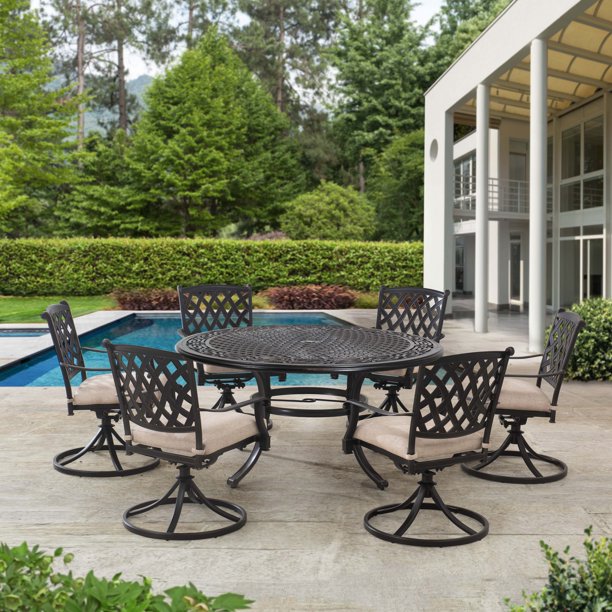 Larger patio dining sets can seat upwards of seven to eight people comfortably, and are designed for more formal meals, while most patio when shopping for patio cushions and pillows, make sure to select the right size by examining the product dimensions, as well as a material that is compatible.
